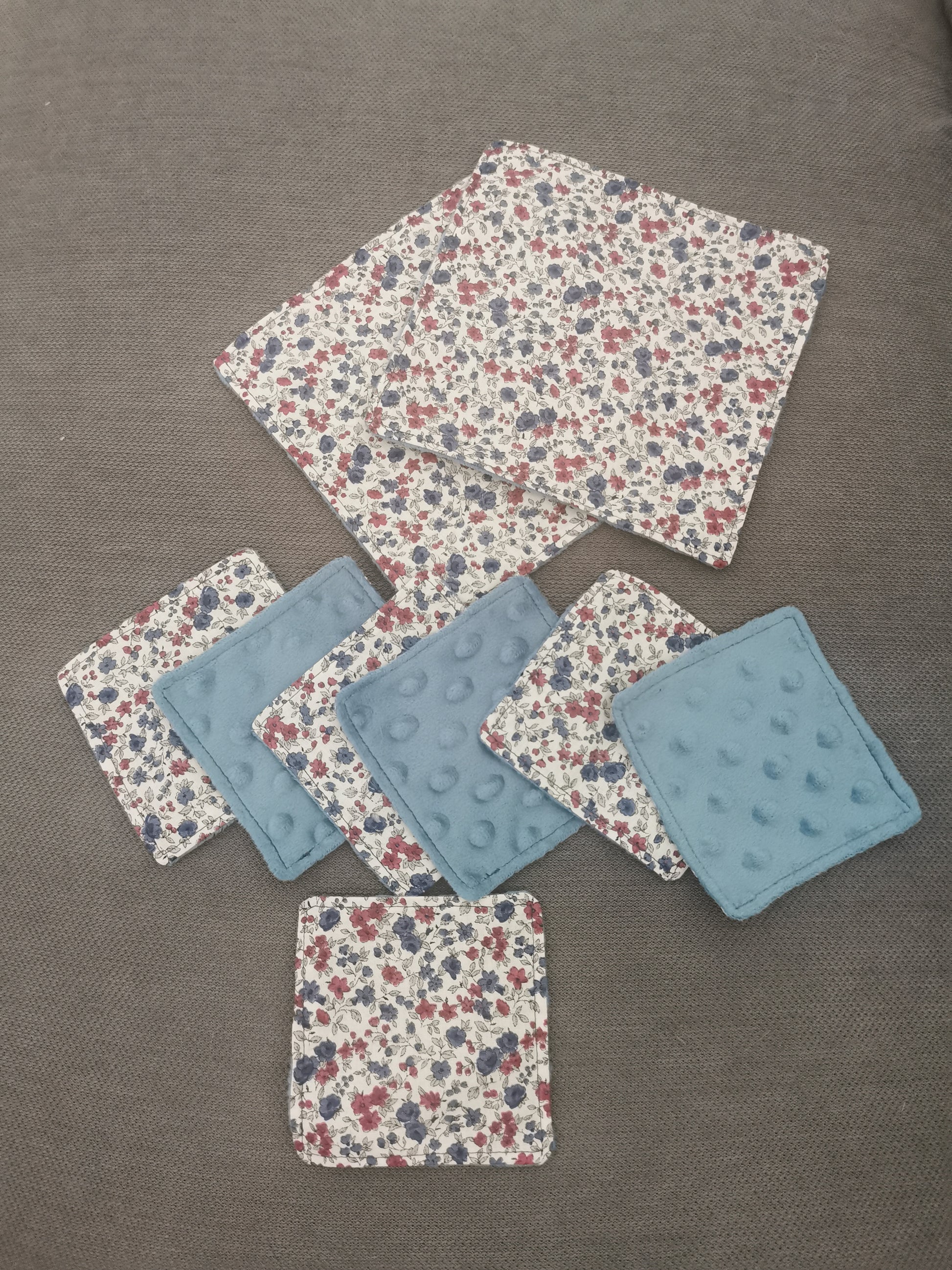 Lot comprenant 2 serviettes de visage en bambou et coton de 19 x 19 cm et de 7 lingettes de 10 x 10 cm