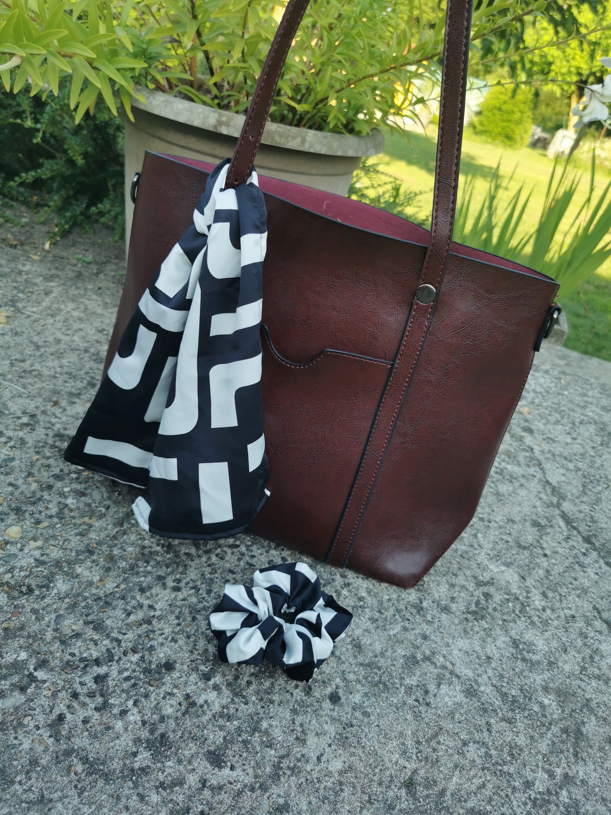 Un foulard de sac et un chouchou assorti pour être raccord cet été.
